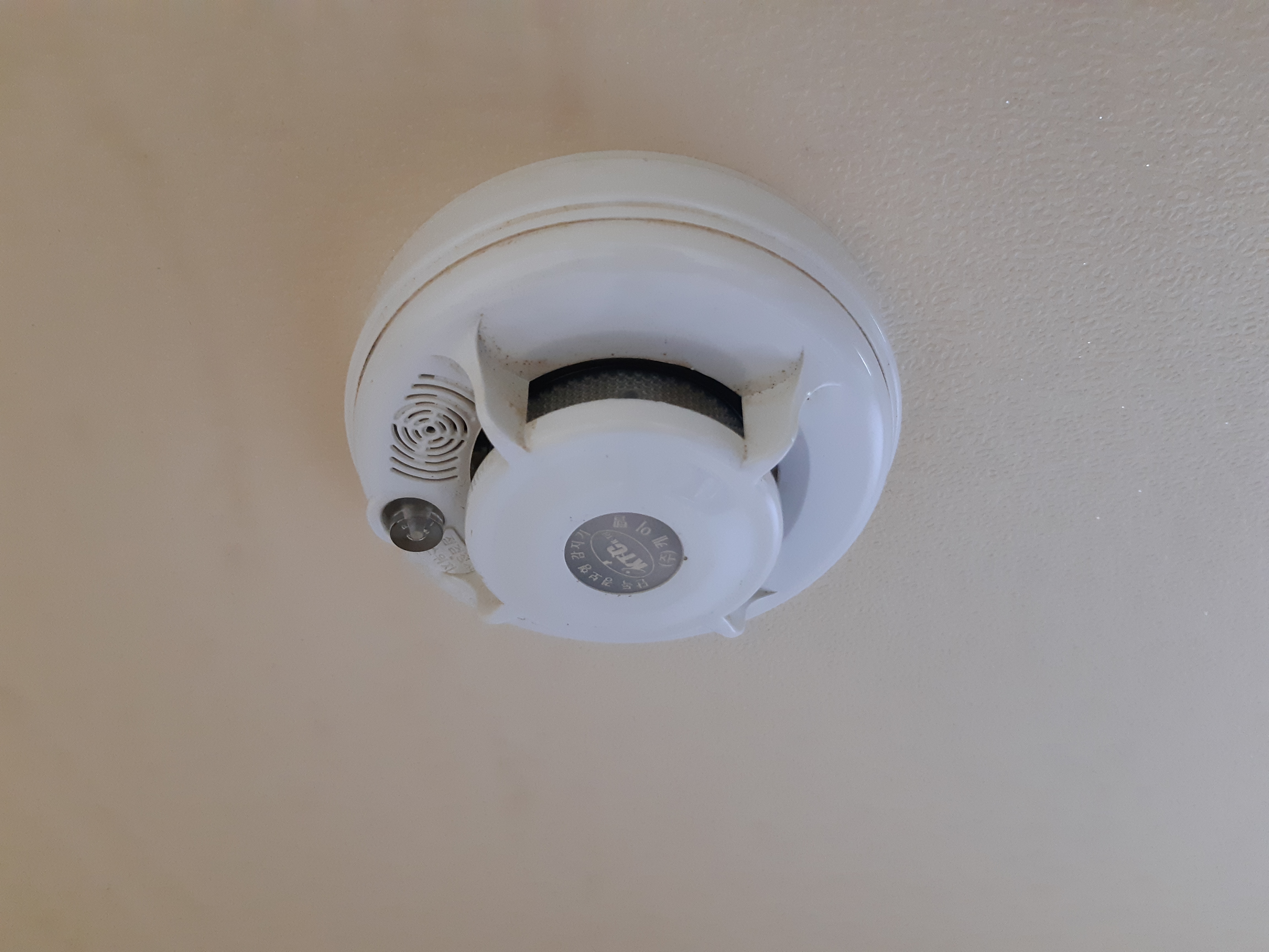 내가 거주하고 있는 단독주택에서 쓰고 있는 단독경보형 화재감지기는 "케이텔"이라는 제품을 쓰고 있다. 왼쪽으로 돌리면 개방되어 감지기 내부를 볼 수 있고, 오른쪽으로 돌리면 다시 천장에 잠글 수 있는 구조로 돼있다.