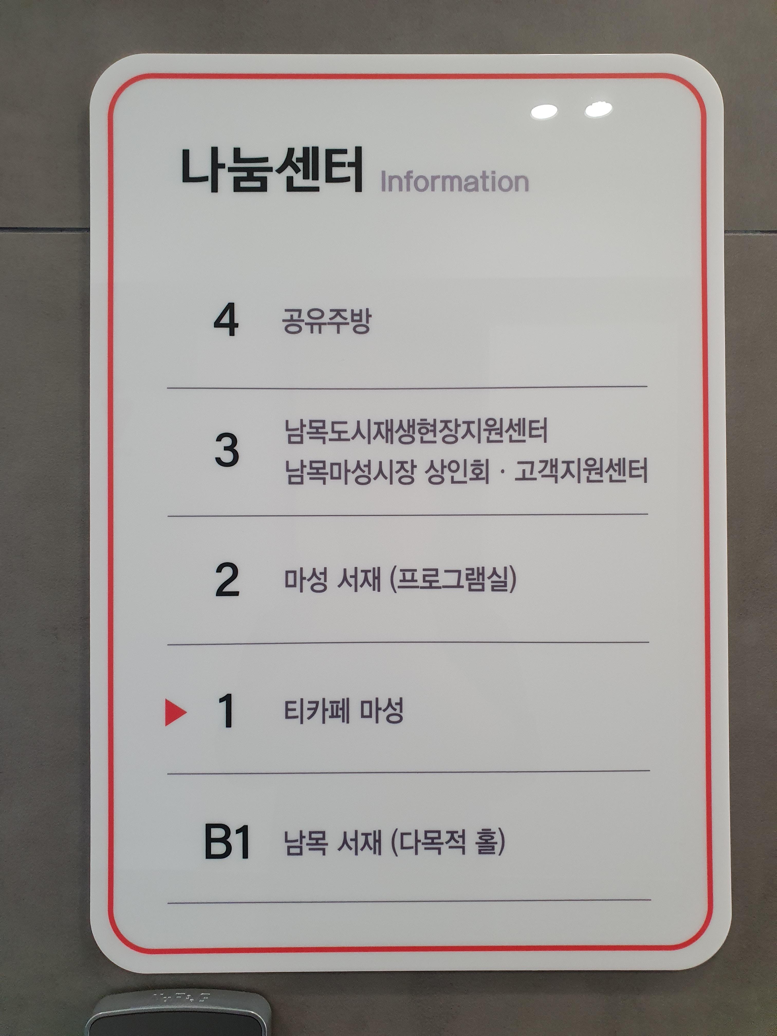 나눔센터 건물은 깨끗하게 잘 되어있었다. 1층에 카페(티카페 마성)가 있는데, 예전에 방문한 적 있었던 울산갈릴리교회(예장 고신총회 교단 소속) 1층에 있는 카페에 재방문하려고 했으나, 처음가는 만큼 교회 카페 대신 이곳을 선택하기로 했다.